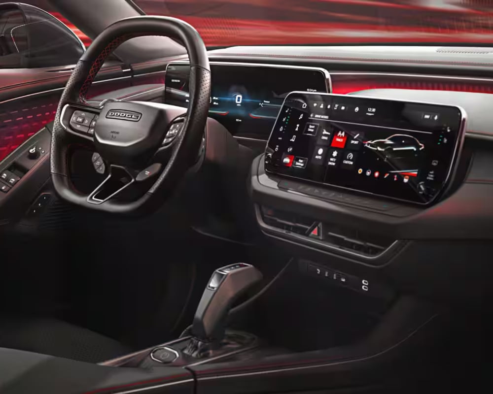 The Charger Daytona comes in two exciting trims. The R/T Package offers an impressive 496 horsepower and 404 lb-ft of torque, giving you a balance of power and efficiency that makes everyday driving a thrill. If you want even more power, the Scat Pack takes things to the next level with a jaw-dropping 670 horsepower, making it a true performance beast. The all-wheel-drive system provides outstanding grip and stability, while the rigid chassis and available staggered tires give you precise handling. Plus, charging is a breeze with Dodge’s Free2move packages, offering either a home charging station or public charging credits to keep you powered up wherever you go. With a max charge rate of 183 kW, you can recharge from 20% to 80% in about 33 minutes using a 350-kW DC fast charger.