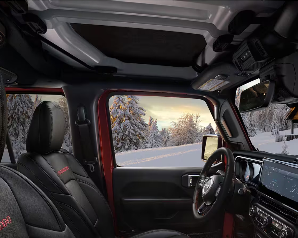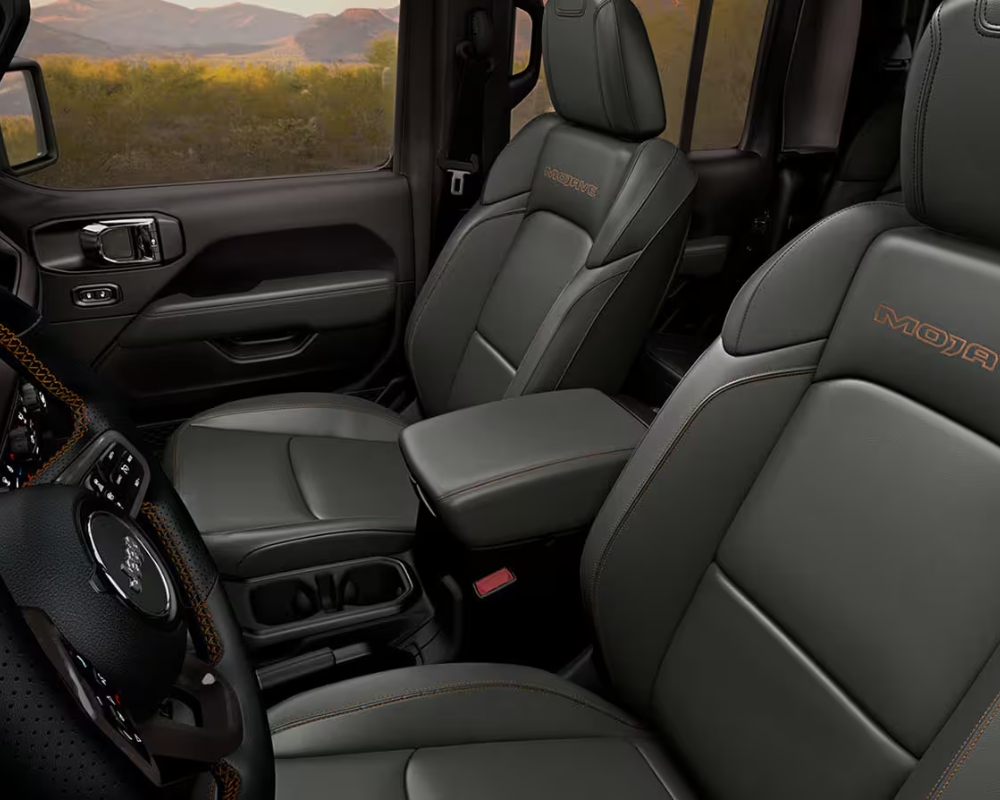 Climb inside the 2025 Jeep Gladiator and feel the spacious comfort. The cabin features premium materials, and the seats are made for long journeys. The front headroom is 1,036 mm, the legroom measures 1,046 mm, and the shoulder room is generously 1,415 mm.