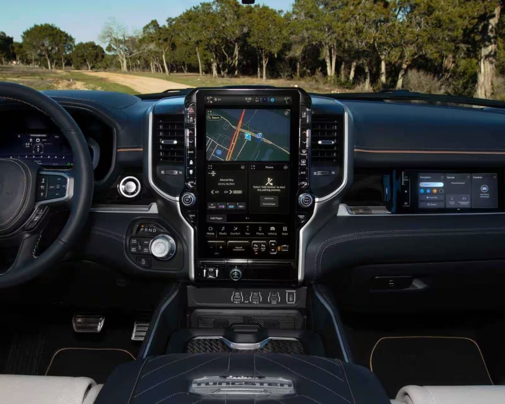 Step inside, and it feels like luxury on wheels. The 2025 Ram 1500 Sport offers premium seating with enhanced bolstering and available leather-trimmed options. The spacious crew cab gives you room for the family or your work crew, while clever storage solutions ensure you’re ready for any adventure. Heated seats and a panoramic sunroof? Yes, they’re here too.