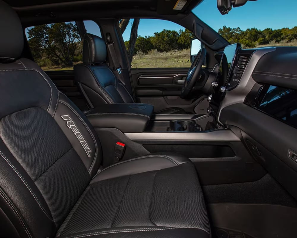 Step inside the 2025 RAM 1500 Tungsten, and you’re greeted with an atmosphere of elegance. Sink into the supple Natura Plus leather, which replaces the base's standard fabric, and enjoy heated and ventilated front and back seats—keeping you comfortable regardless of Waterloo's changing seasons.
