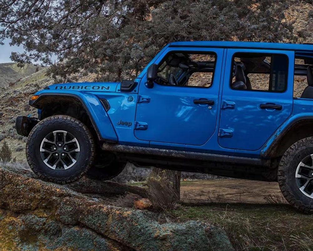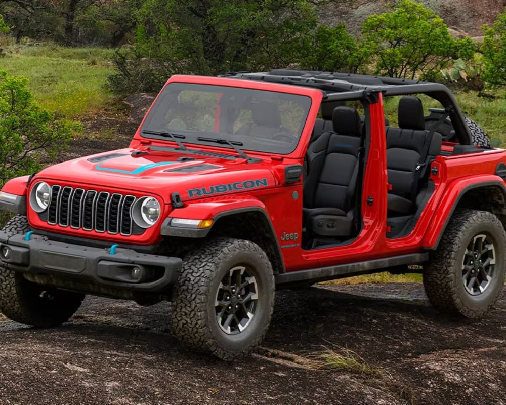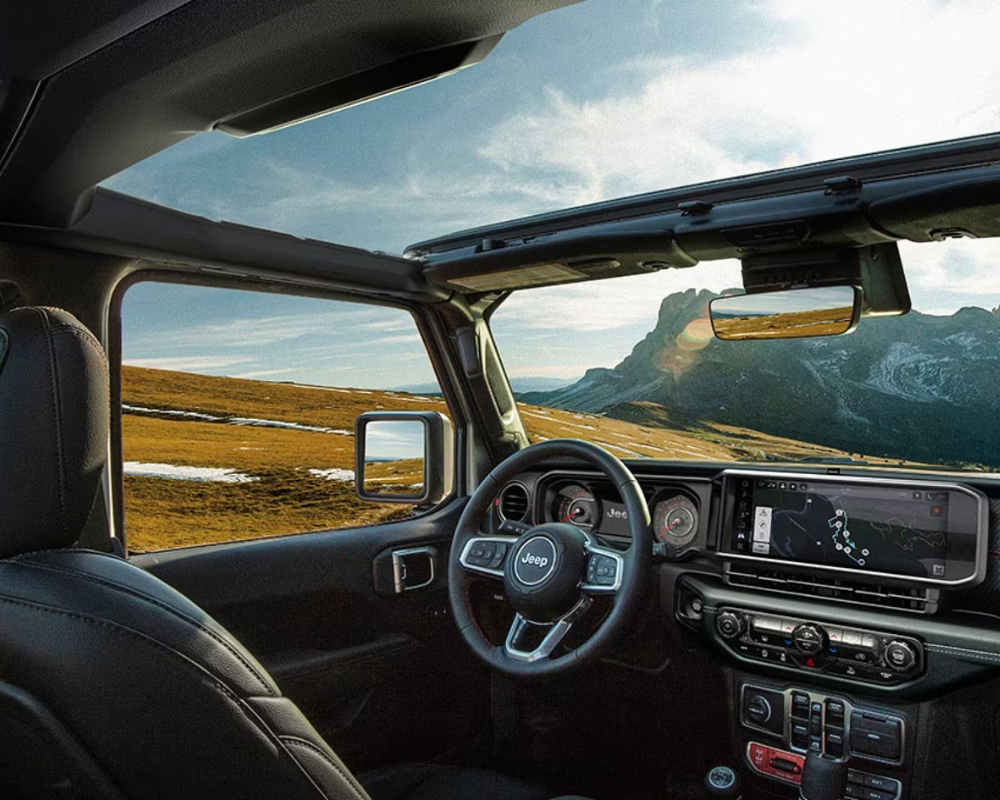 This one’s for drivers who want serious comfort along with legendary off-road power. The 4-Door Rubicon X adds premium touches like a power 12-way adjustable front seat for both driver and passenger. It also comes with a bold steel front bumper and a body-colour hardtop that looks clean and tough. Inside, you get the big 12.3-inch touchscreen with Uconnect 5 NAV, plus GPS Navigation and Connected Travel Services. There’s an Alpine Premium Audio System and even a portable wireless speaker for when you want music at your campsite. This trim blends luxury and rugged strength in the most complete way.
