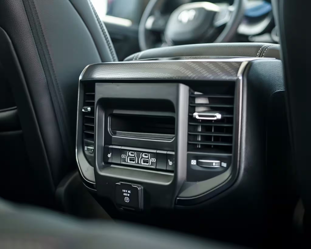 Step inside, and the 2025 Ram 1500 Limited greets you with premium leather upholstery, real wood accents, and a suede headliner. The spacious cabin seats five passengers comfortably, providing ample legroom for everyone. When extra cargo space is needed, the rear seats fold down, creating additional room for tools, gear, or whatever your adventure demands. The front seats are 24-way adjustable with heating, ventilation, and massage functions. Rear-seat passengers also get the luxury treatment with heated and ventilated seats, ensuring comfort in all weather conditions. Smart storage compartments throughout the cabin add even more convenience, making organization effortless.